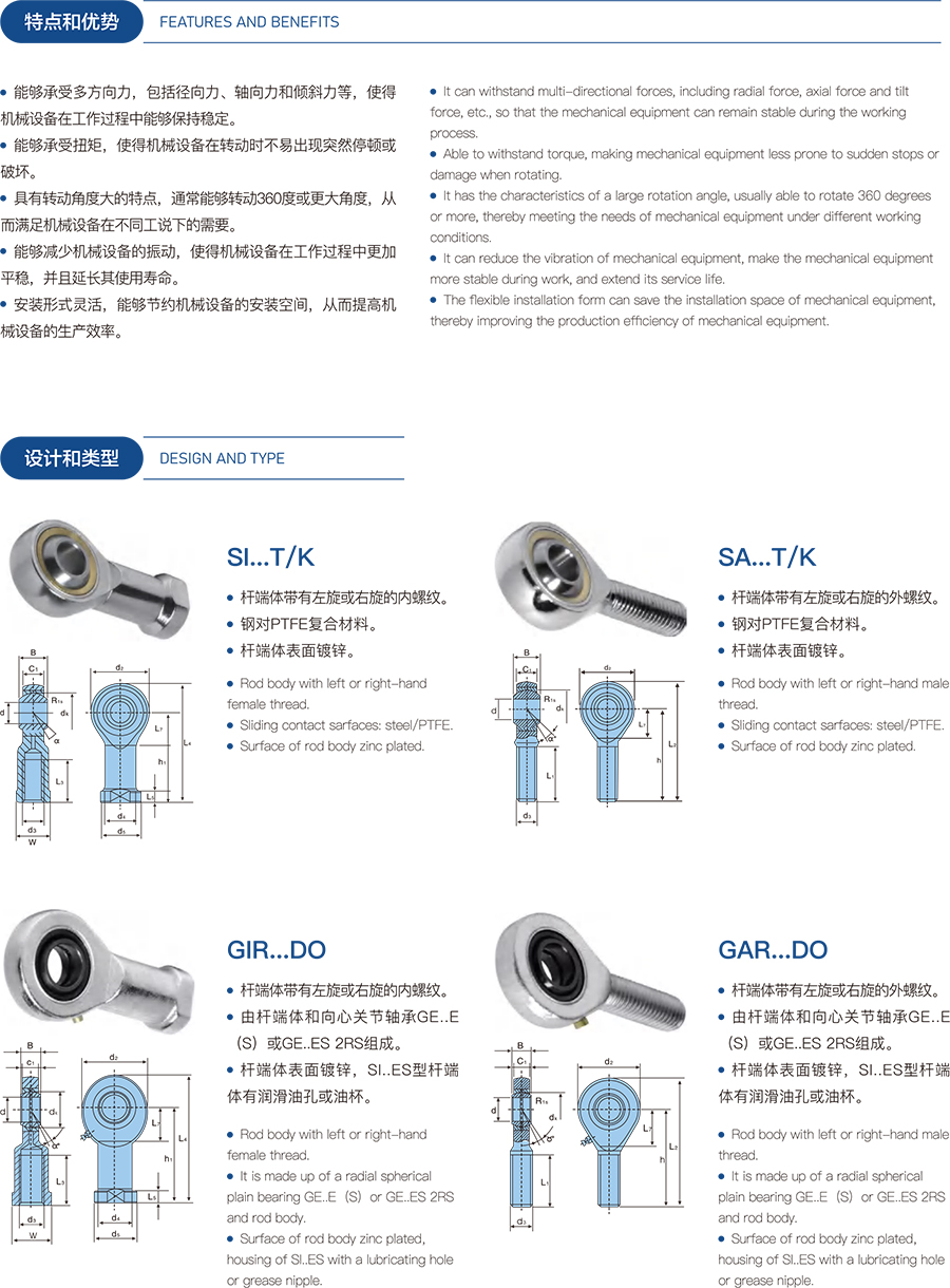 杆端关节轴承在机械设备中的作用十分重要,它能够承受多方向力和扭矩,转动角度大,减少机械设备振动,节约空间等优点,使得机械设备在工作过程中更加稳定和高效。